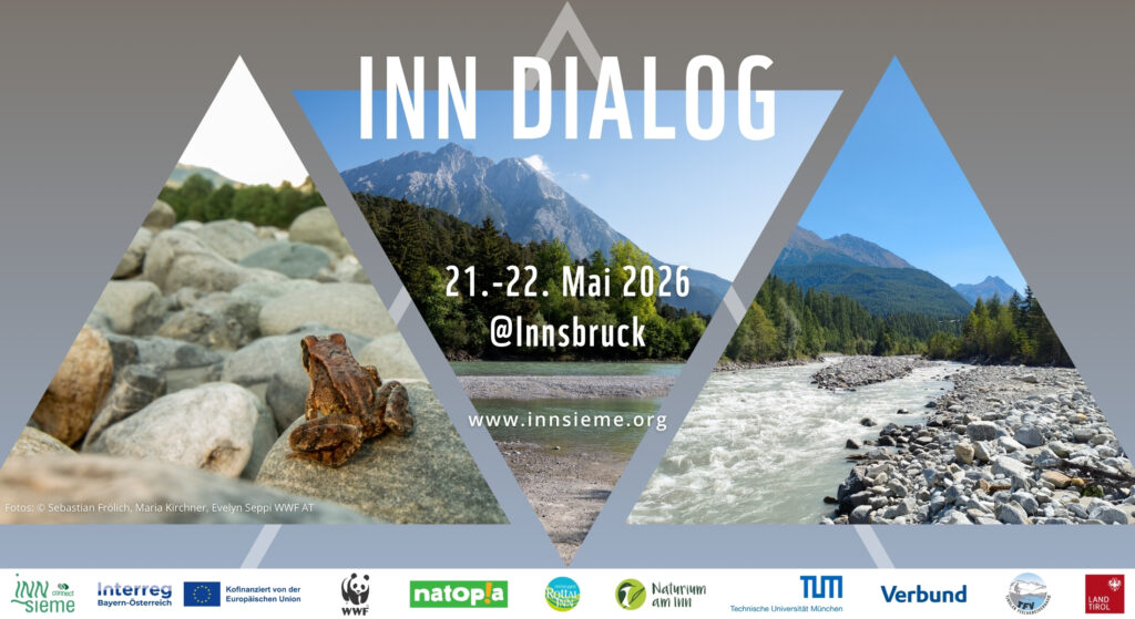 Mit Abschluss des Projekts INNsieme connect findet der fünfte internationale INN Dialog statt – ein Austauschformat im Konferenzstil, bei dem sich alles um den Inn und die Renaturierung von Flüssen dreht. Unter dem Motto „Vom Kiesel zur Au – Gemeinsam den Stein ins Rollen bringen“ finden Fachvorträge und Exkursionen statt. Dabei präsentieren Expert:innen erstmalig neue Erkenntnisse zum Inn und zu seinem Geschiebehaushalt. Damit liefern die Projektergebnisse wichtige Erkenntnisse zum Inn, aber auch darüber hinaus zu Alpenflüssen und deren Naturdynamik und Biodiversität.